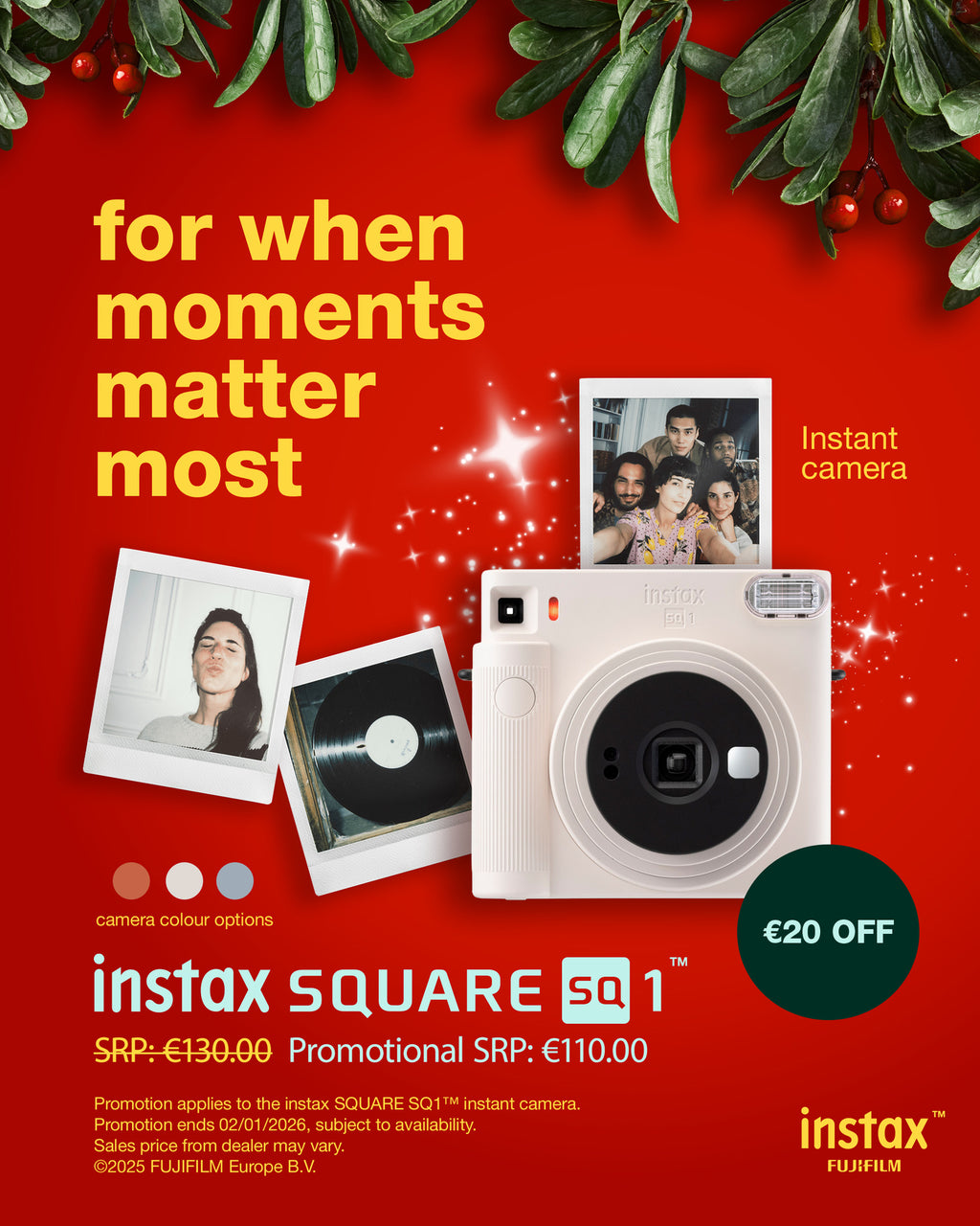 Instax SQUARE SQ1 combines everything that instax fans love about the mini’s cool, modern style and functionality with the larger, vibrant output of our square film. instax SQUARE SQ1 is designed for instax’s creative community of fans, as the perfect companion to help them to create compelling new instant prints.